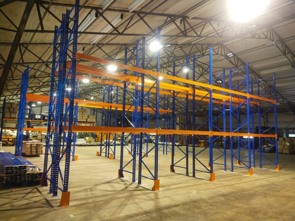- Drive-In Racking: Efisien untuk penyimpanan barang dalam jumlah besar dengan jenis yang sama. Barang dimasukkan dan diambil dari satu sisi sehingga cocok untuk penyimpanan jangka panjang.