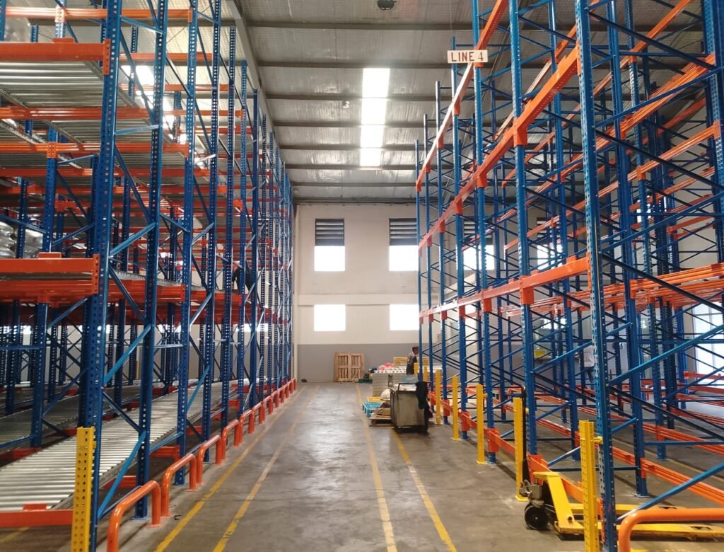 Alih-alih menambah luas lantai, gunakan rak tinggi untuk menyimpan barang secara vertikal. Sistem ini bisa menambah kapasitas hingga 2–3 kali lipat tanpa biaya ekspansi bangunan.